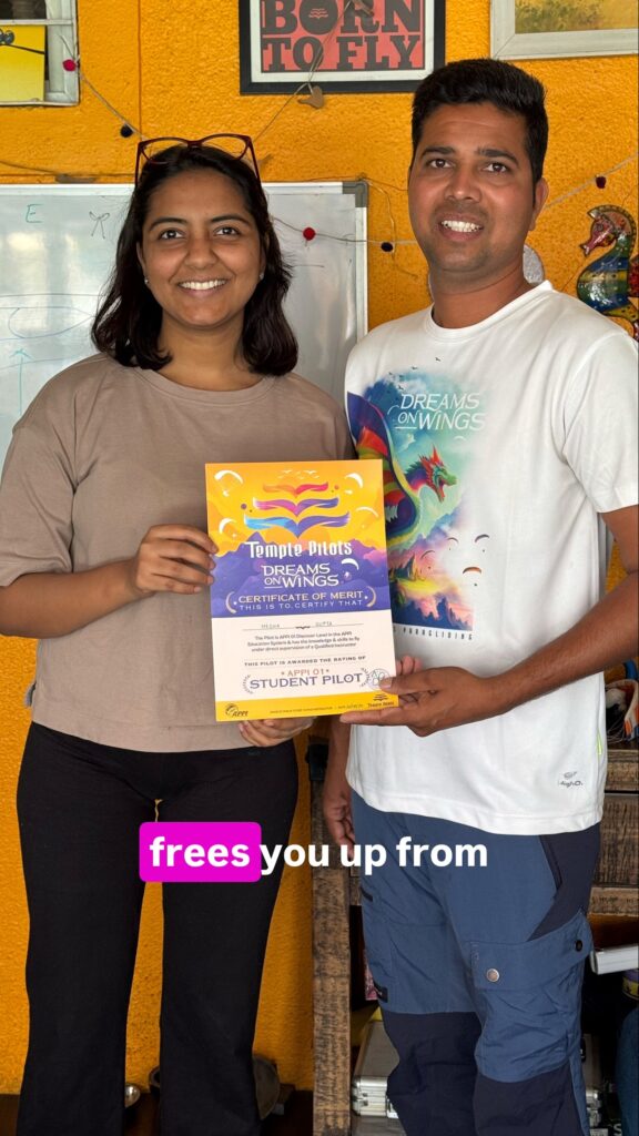 Learning paragliding with Temple Pilot was excellent as I didn’t expect the teachings would be that world 🌎 class..i managed to build a solid foundations on paragliding though I was there for just 10 days.. just before my departure, at home 🏡 i couldn’t have time to get myself ready making myself physically strong because of my hectic work schedule adding it little hindrance towards my training leading to a bit of tiredness and fatigue..but next time I will go back to Temple Pilot with fully charged up physique 😊 ..my Gurus like Mihir Sir, Vinayak Sir, Praveen Sir, Ankush Sir, and to mention many are always helping us identify our limits or weaknesses and how to overcome those weaknesses..so just like i trust my heavenly angels ..i could trust them…so now I don’t have to daydream about paragliding..i am conscious and fully awake and realised my dream of flying 🪽 by going to Temple Pilot paragliding school…